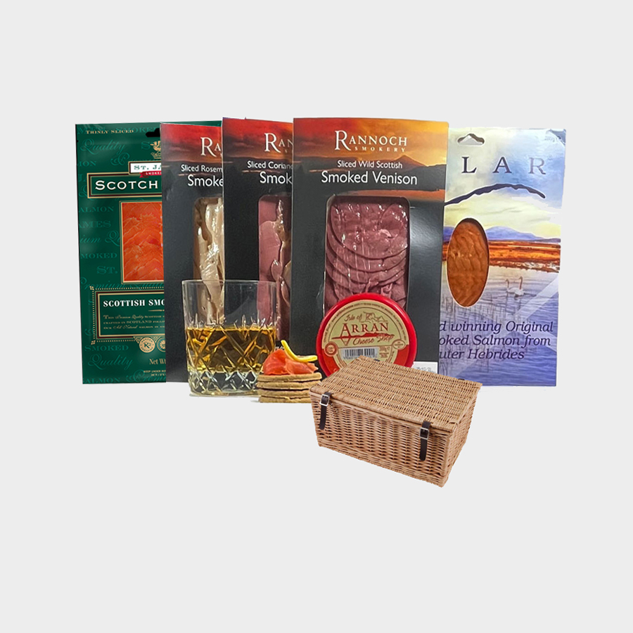 We have collected together the best smoked meats and fish from Scotland’s finest smokehouses for this delectable hamper. A real taste of the Highlands with venison, salmon, duck, chicken and a fabulous smoked cheese from Arran.