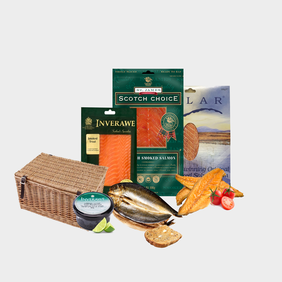 Seafood Smokehouse Gold Hamper in a Basket